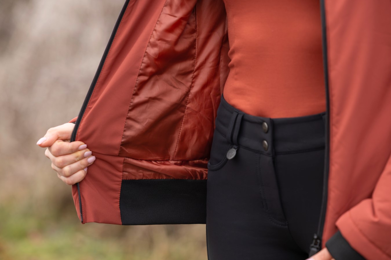 - deux poches cavalières et une poche intérieure à fermeture éclair