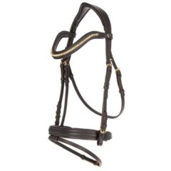La martingale à anneaux est probablement le modèle le plus utilisé aujourd’hui. Elle passe de la sangle jusqu’au centre de la poitrine du cheval, et les rênes passent à travers l’anneau à l’extrémité de chaque sangle. Une sangle de cou empêche la martingale de se balancer.